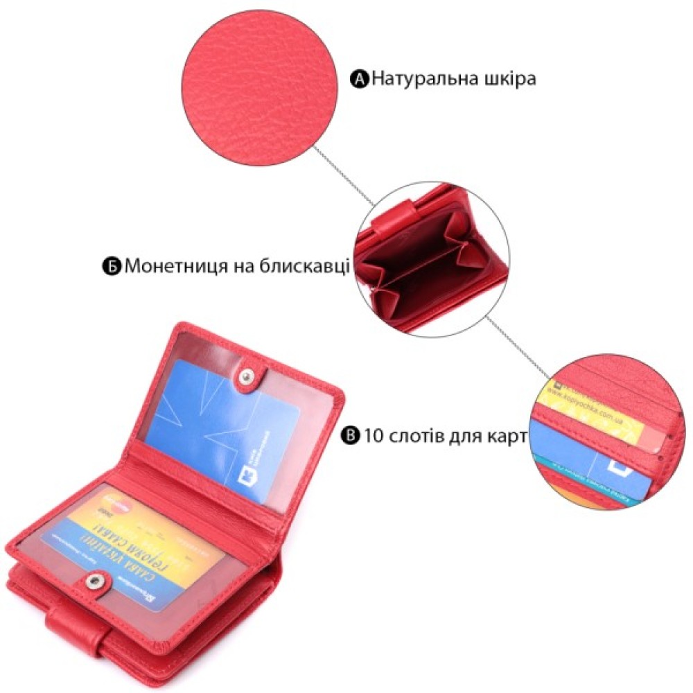 Яскравий гаманець для жінок середнього розміру із високоякісної шкіри флотар, яка має шляхетну зернистість та високу зносостійкість.