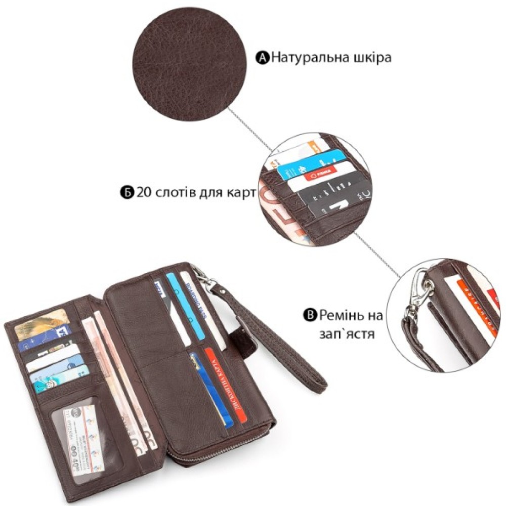 Багатофункціональний шкіряний жіночий гаманець. У такий аксесуар з легкістю помістяться купюри будь-яких розмірів, кредитні картки та багато іншого, що потрібно сучасній дівчині.