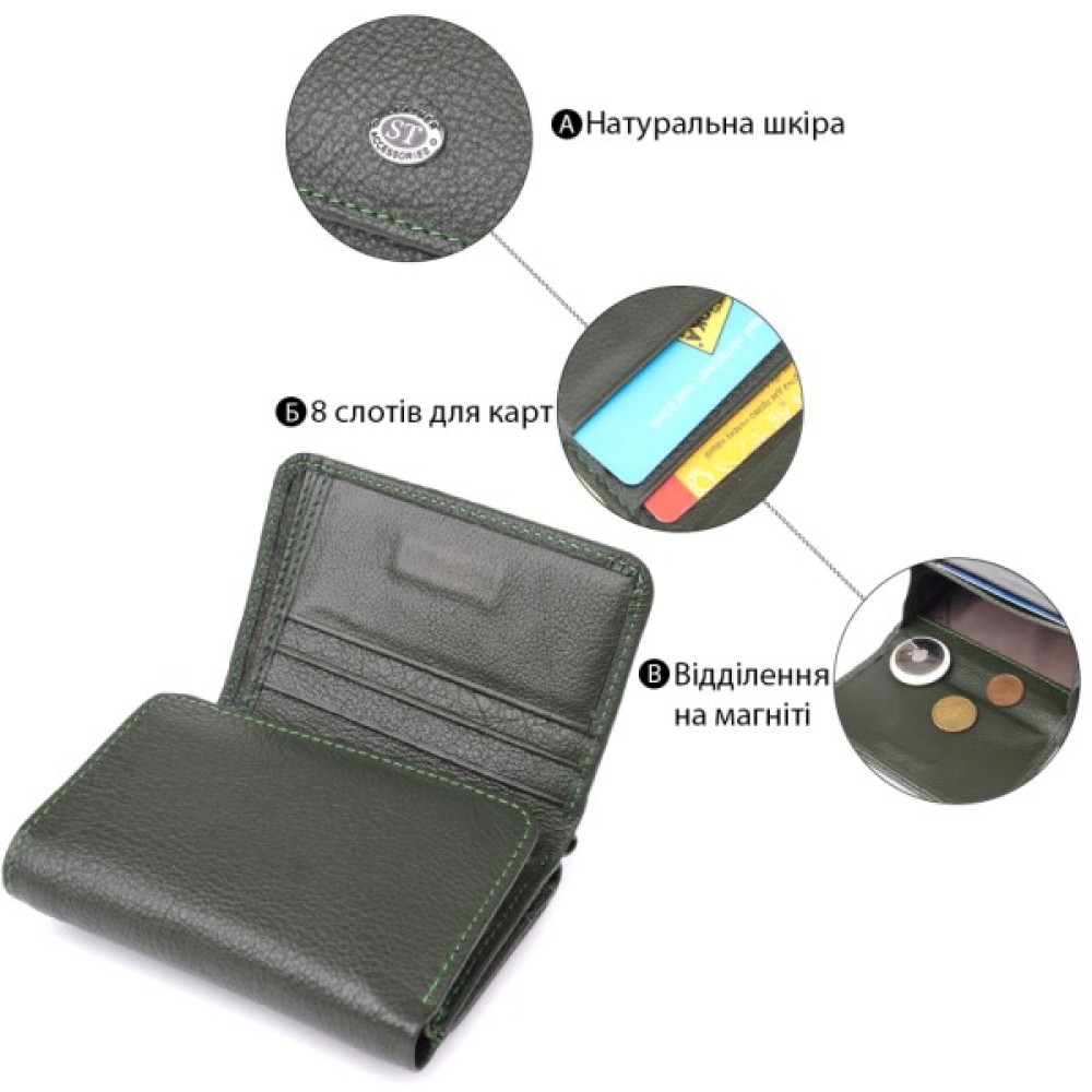 Гаманець ST Leather З натуральної шкіри Зелений (23072)