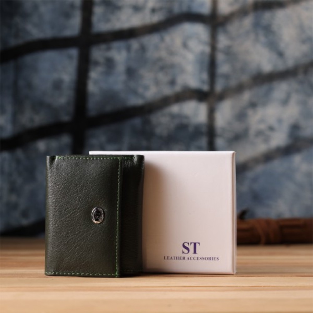 Гаманець ST Leather З натуральної шкіри Зелений (23083)