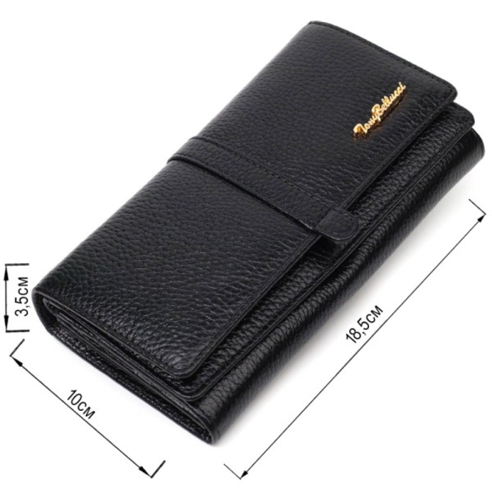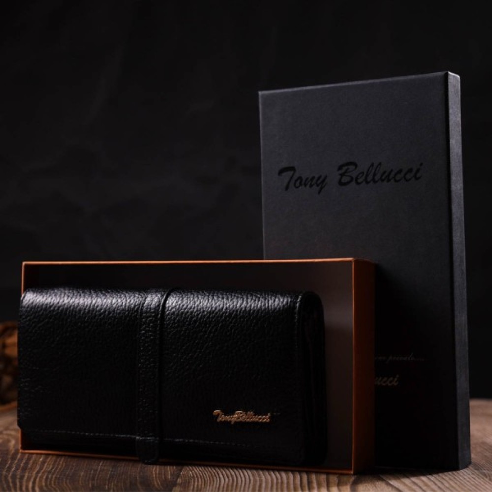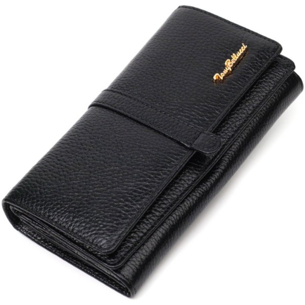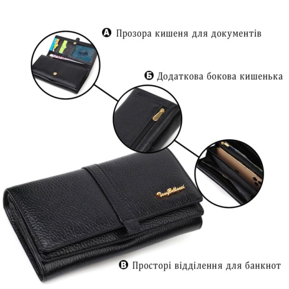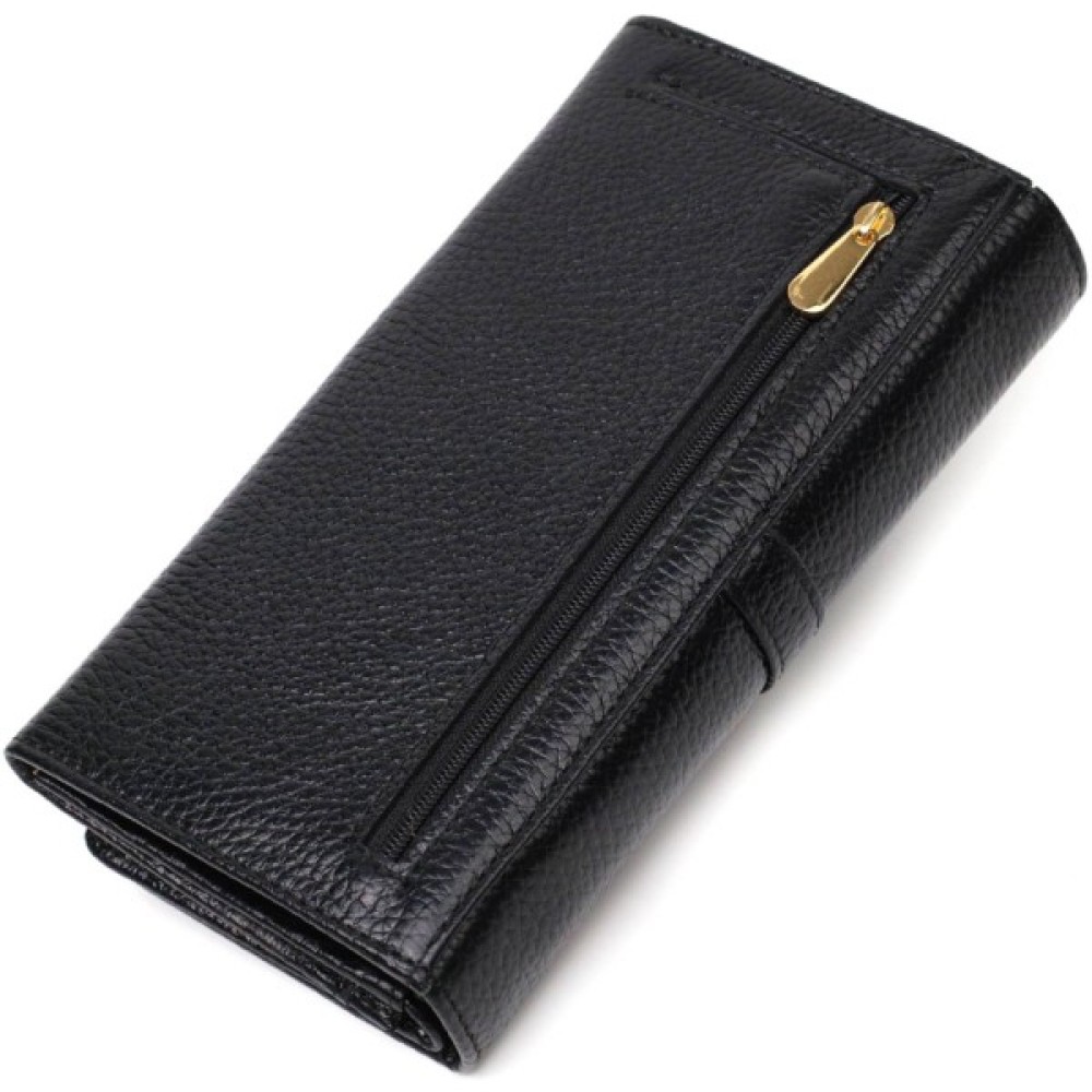 Яскравий жіночий гаманець із натуральної шкіри флотар, для якої характерна міцність, зносостійкість та зерниста фактура. Аксесуар складається з чотирьох широких відділень для купюр, одинадцяти осередків для пластикових карток, двох прилеглих кишень та трьох кишень на блискавках, які можна використовувати як монетниці. У виробі використано якісну фурнітуру золотистого кольору. Закривається гаманець клапаном на кнопку.