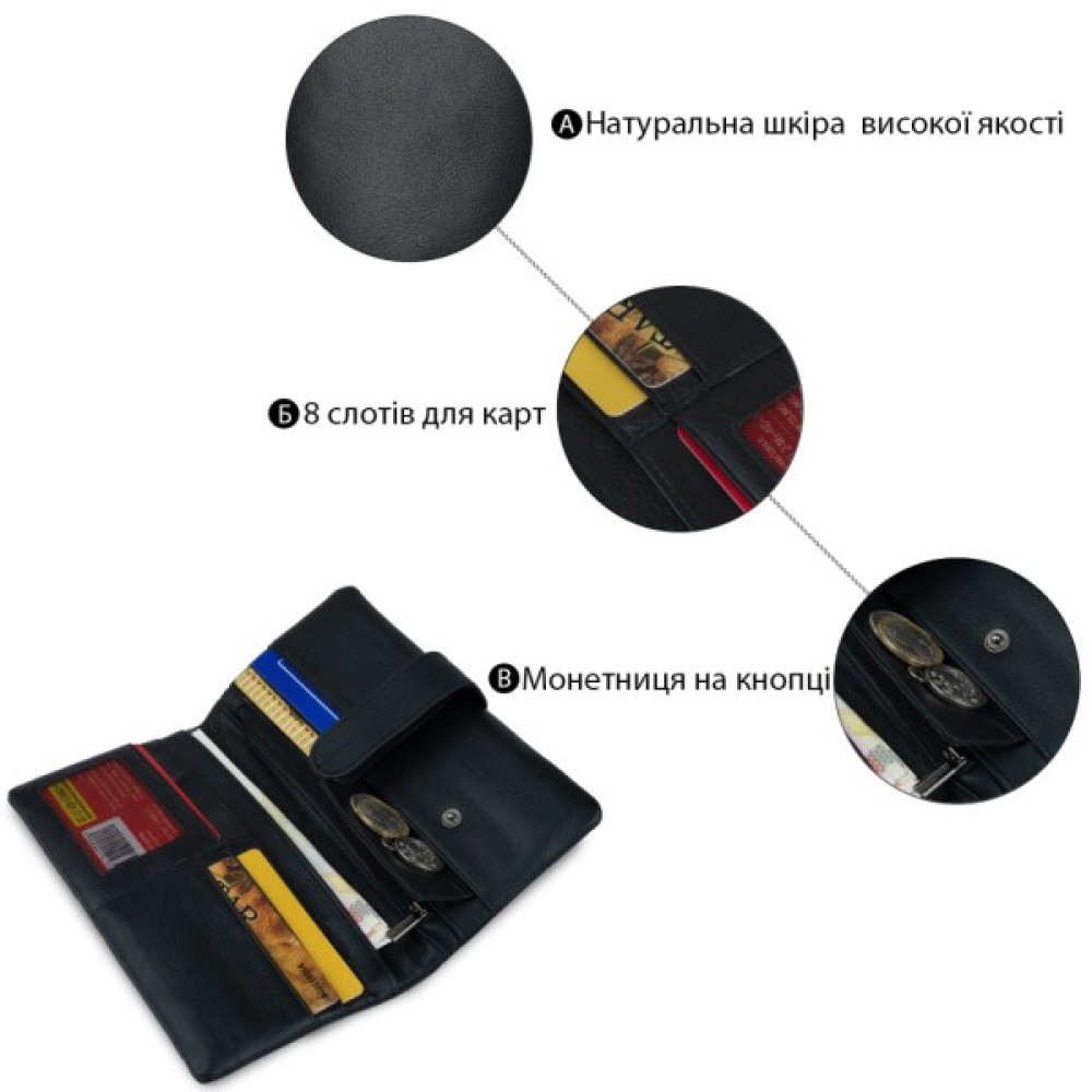 Дизайн гаманця — у класичному стилі, продуманий до дрібниць для зручності.