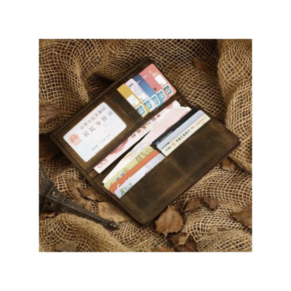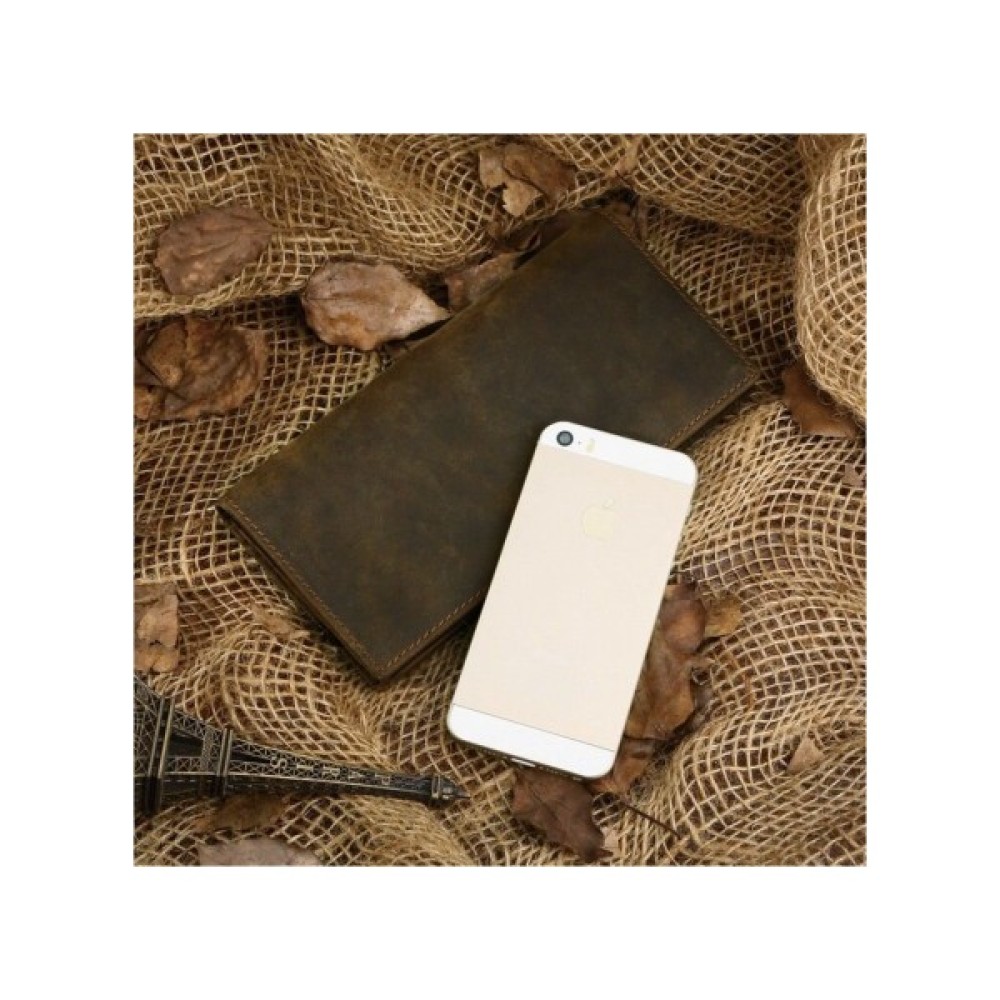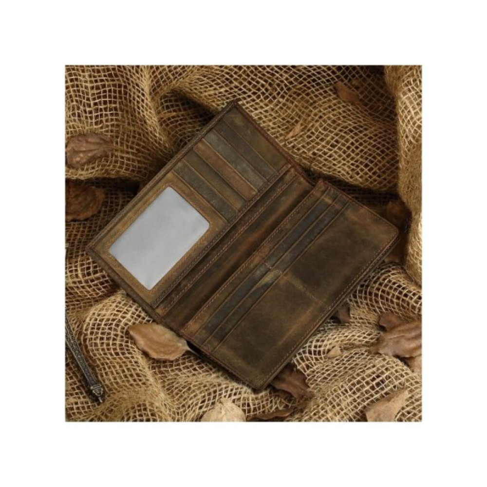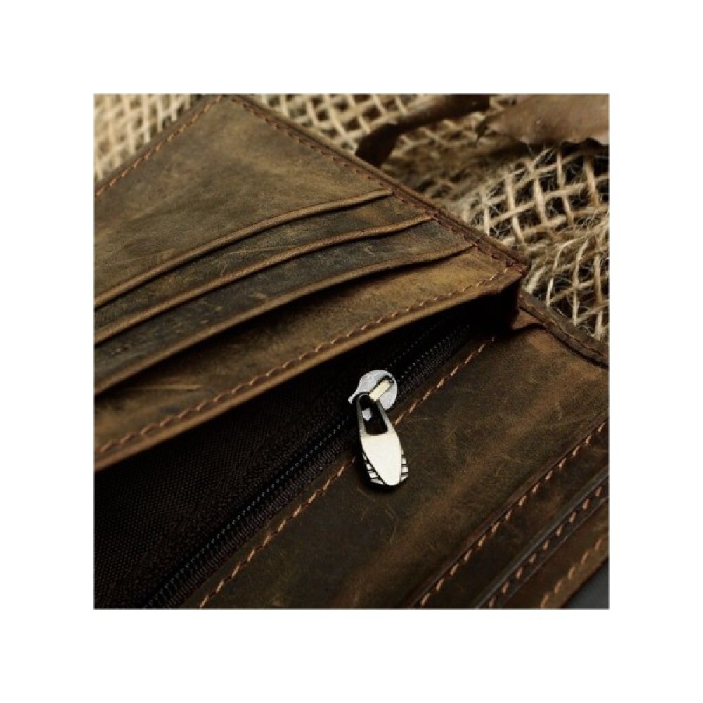 Сучасний, якісний гаманець коричневого кольору. Аксесуар виконано з натуральної вінтажної шкіри, яку прийнято називати Crazy Horse (Крейзі Хорс). Відмінними рисами такої шкіри є потертості і неоднорідність забарвлення, що надає виробу оригінальність.