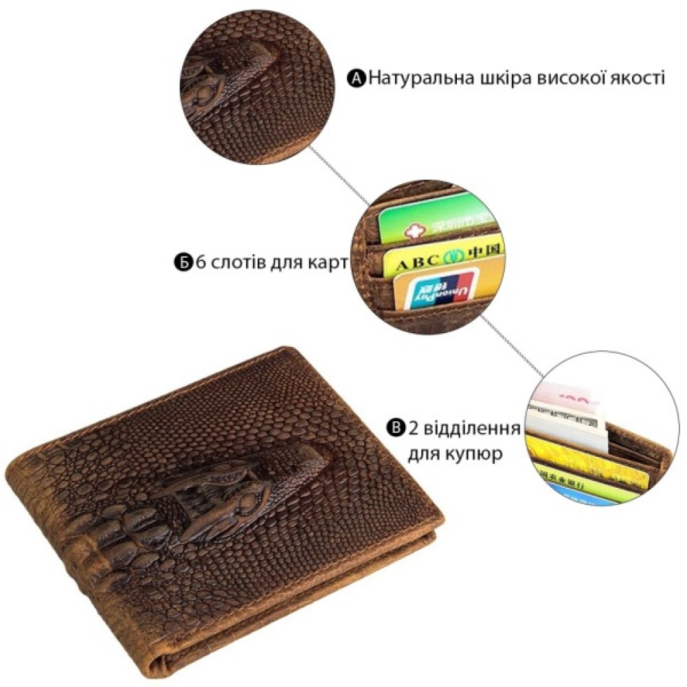 Шикарний чоловічий гаманець зі шкіри з фактурою під крокодила.