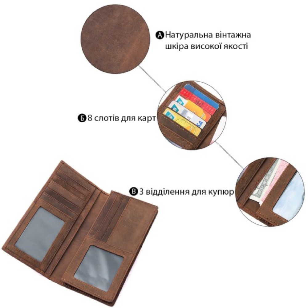 Надійний чоловічий гаманець з натуральної високоякісної вінтажної шкіри.