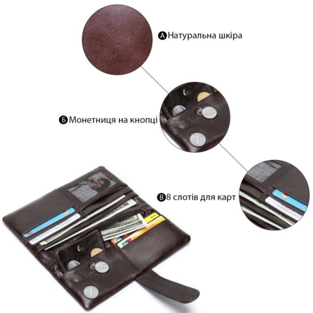 Дизайн гаманця виготовлений у класичному стилі і продуманий до дрібниць для вашої зручності.