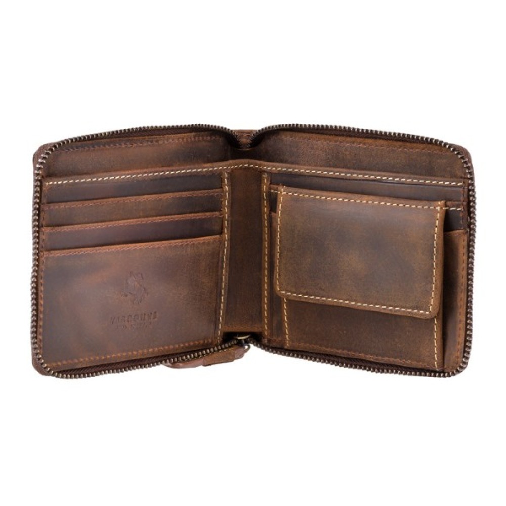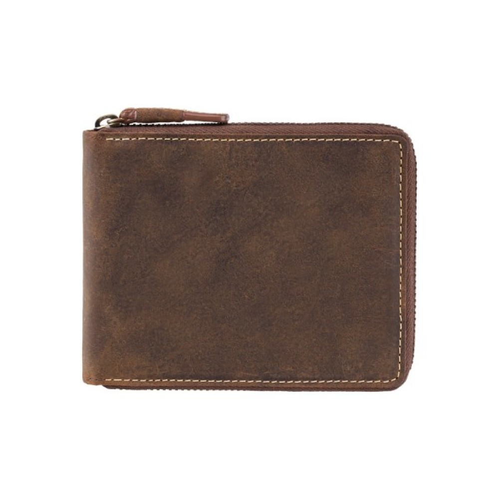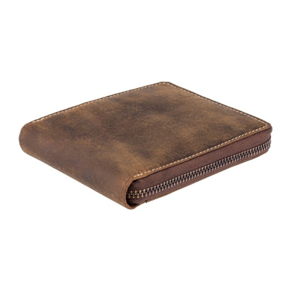 Чоловічий гаманець Visconti 702 Bulletкомпактний горизонтальний гаманець на дві складання з блискавкою по всьому периметру. Виготовлений з м'якої натуральної шкіри з ефектом потертостей у вінтажному стилі та спеціальною пропиткою, яка відштовхує пил і вологу.