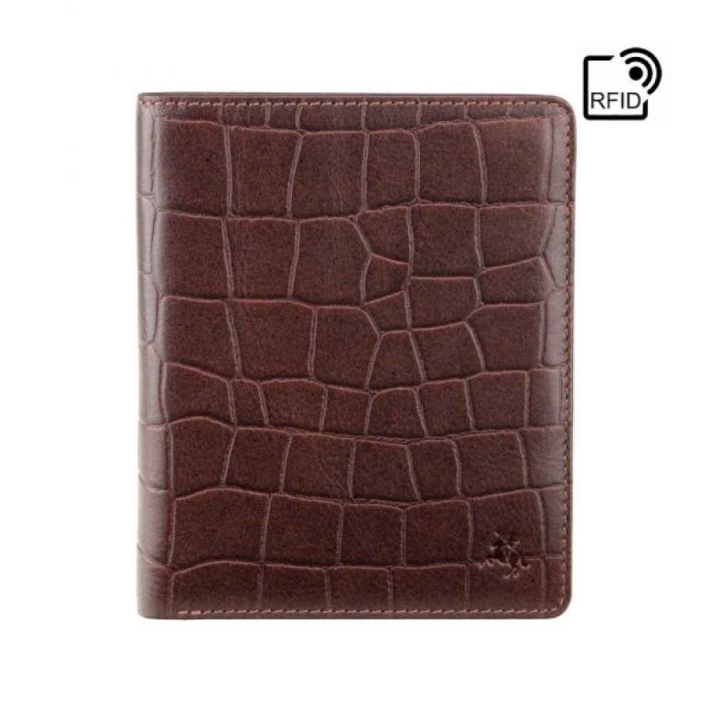 Багатофункціональний чоловічий гаманець із дуже міцної телячої шкіри рослинного дублення з тисненням під крокодила. Чудовий вибір подарунка для солідного чоловіка. Модель має вбудований RFID – чіп для ваших банківських карток та документів від несанкціонованого доступу. Зовні має видавлений у шкірі фірмовий логотип Visconti. Модель випускається у трьох кольорах.