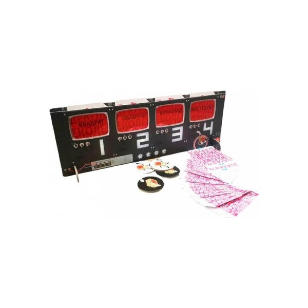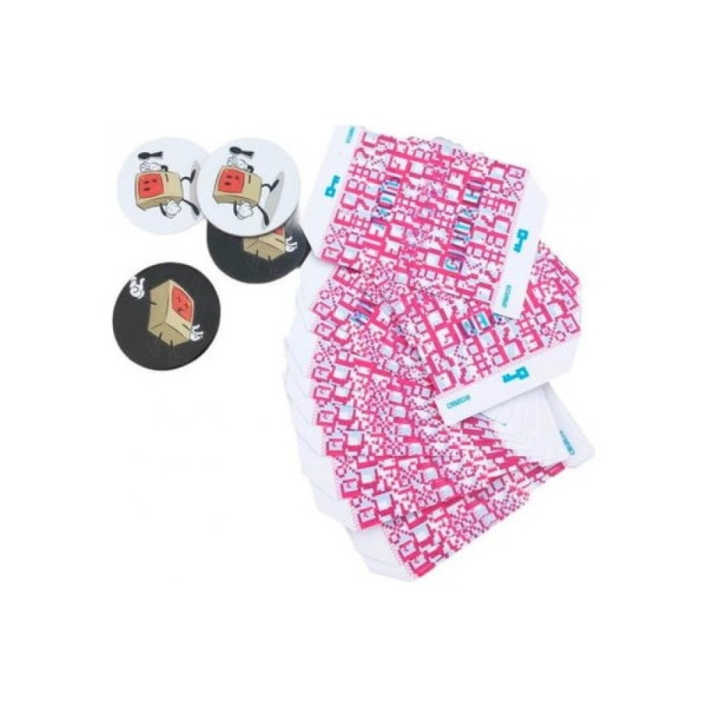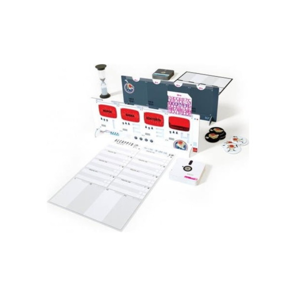 пісковий годинник, 2 ретрокомп'ютери, 110 карток зі словами (440 слів), 48 карток-кодів, 8 жетонів, аркуші для записів, правила гри
