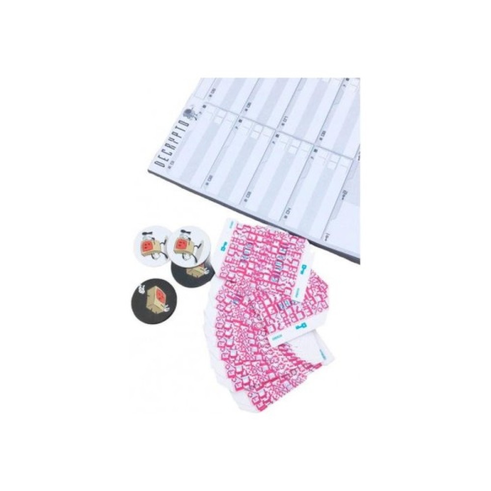 Комплектація включає пісковий годинник, два ретрокомп'ютери, 110 карток зі словами, які забезпечують 440 нових термінів, 48 кодових карток і 8 жетонів. У додатку є аркуші для записів і детальні правила, все це доставить вас у світ захоплюючої шифровки. Сучасний дизайн гри в чорному та золотому кольорах додає відчуття стильного шпигунського естетизму.