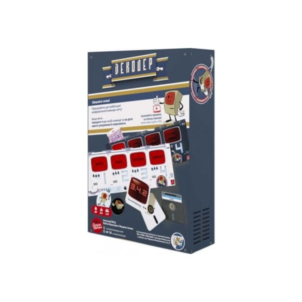 Настільна гра "Games 7 Days Декодер. Ювілейне видання (Decrypto: 5th Anniversary Edition)" – це незабутня інтелектуальна розвага для шанувальників карткових ігор. У цій грі ваші асоціативні здібності будуть перевірені через завдання дешифровки кодів. Це ідеальний вибір для всієї родини та компанії, і доступний для гравців від 12 років. Незважаючи на прості правила, гра захоплює своєю глибиною та непередбачуваністю.