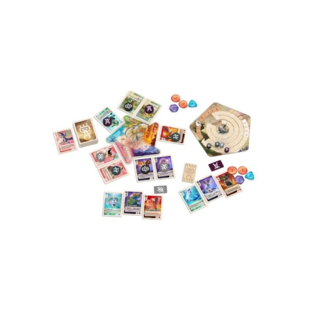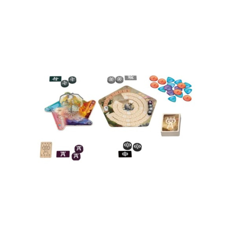1 ігрове поле та фішка Вічності, 1 планшет для підрахунку очок, 42 чарівні камінці, 1 маркер першого гравця, 1 маркер раунду, 8 маркерів гравців, 4 маркери очок, 70 карток, 4 плитки гравця, правила гри