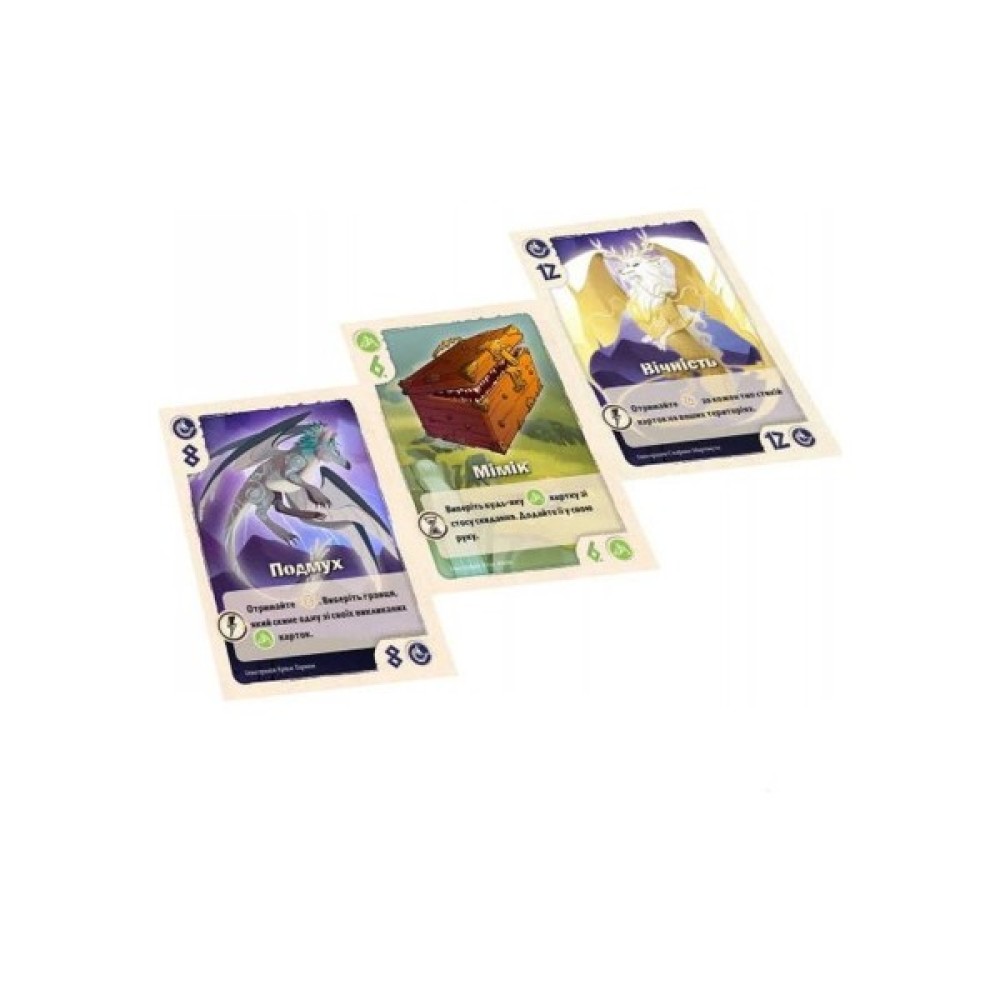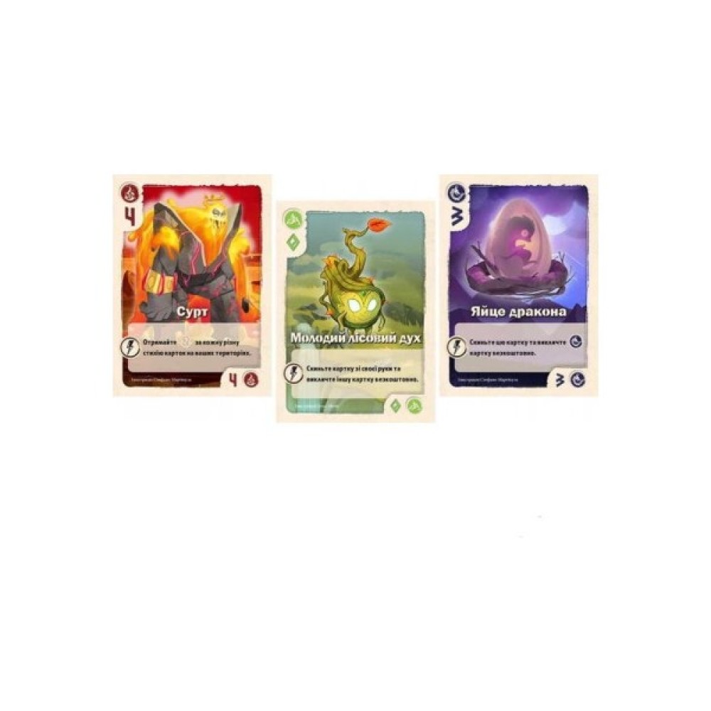<б>Різноманітність ігрових картб> вражає: всі 70 карт мають власні імена та зображення, а кожна – неповторну здатність, яка надає грі незліченну повторюваність. В процесі гри вам доведеться демонструвати <б>майстерність управління ресурсами, щоб захистити землі від зловісних сил.