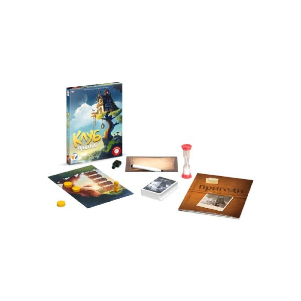 Настільна гра Games 7 Days Клуб пригод (Der Abenteuer Club) — це не просто карткова гра, а справжнісінький світ неймовірних пригод та випробувань для вашої уяви. Кожна партія дарує нові враження завдяки 110 карткам предметів, серед яких можна знайти такі незвичайні речі, як губна помада чи диско-куля. Зануртеся у гру і відчуйте, як звичайні предмети можуть стати ключем до вирішення найскладніших завдань.