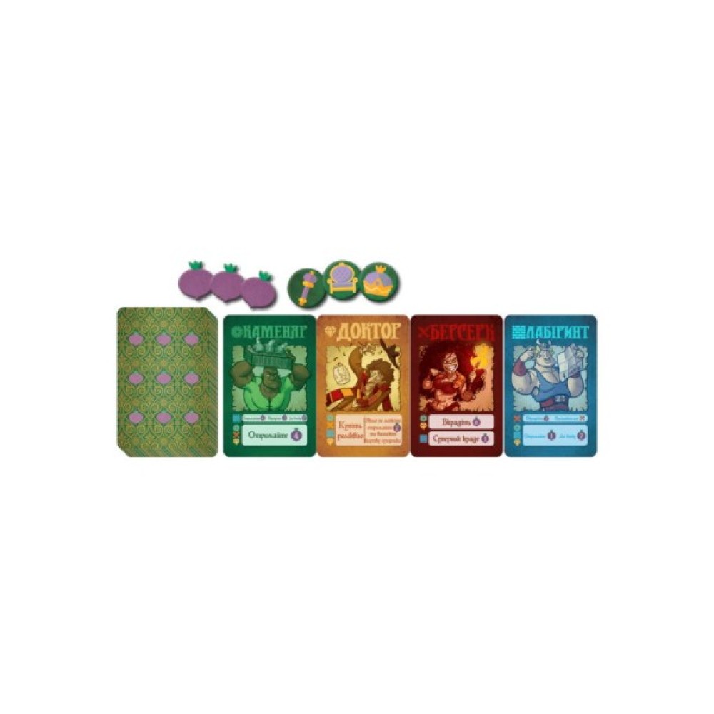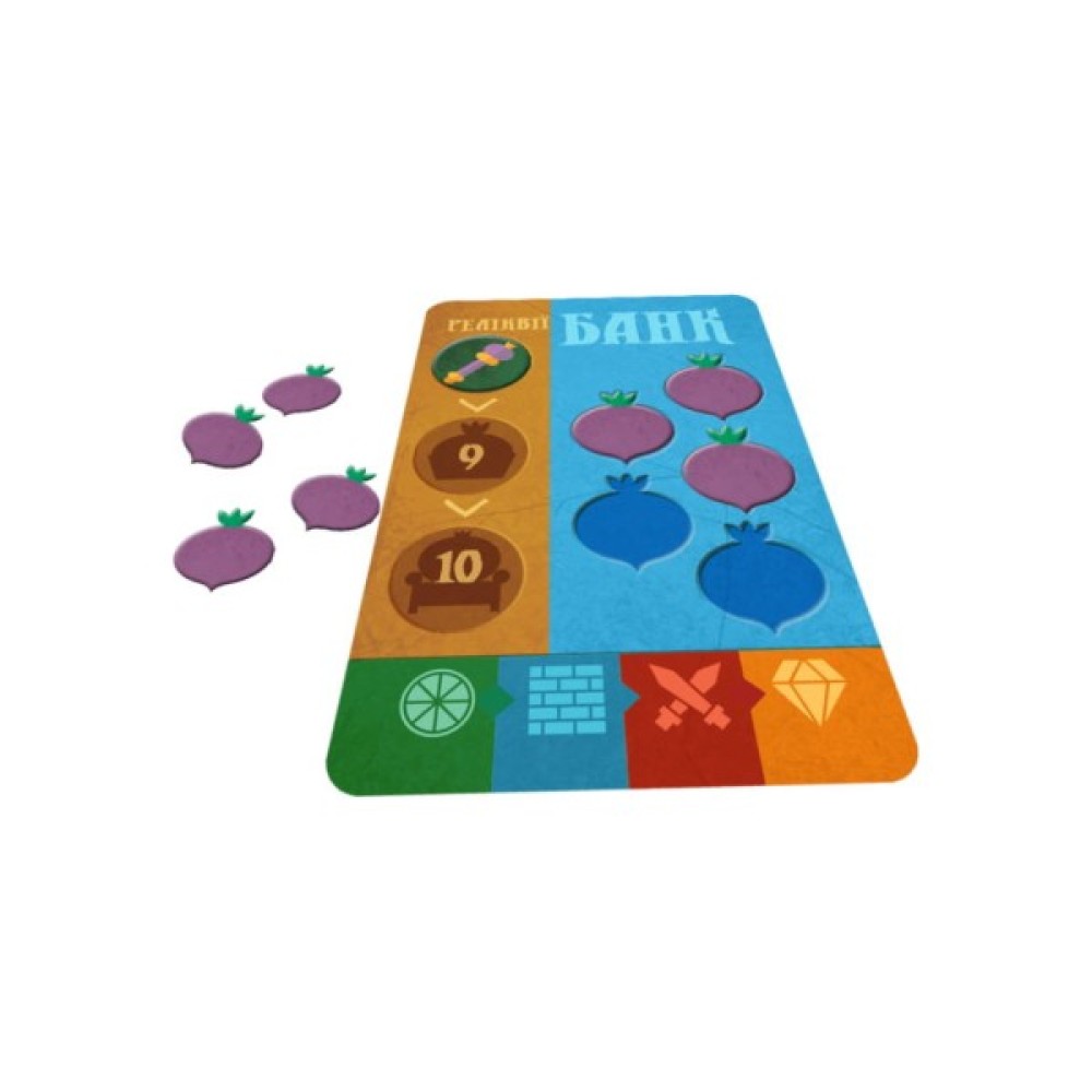 В українському виданні наявні унікальні карти ринку, що додають грі інтриги та можливість зіграти шістьома учасниками. Стратегічно купуйте, плануйте та боріться за реліквії: Скіпетр графського буряка, Редьковий трон та Капустину корону.