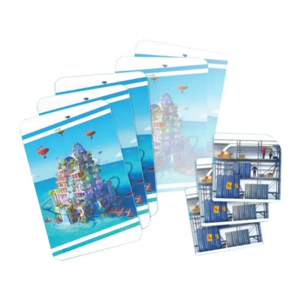 ігрове поле; 120 рамок (по 24 кожного кольору); 100 монет; 78 карт локацій; 72 тайли атракціонів; тайл-пам'ятник; маркер раунду; правила гри