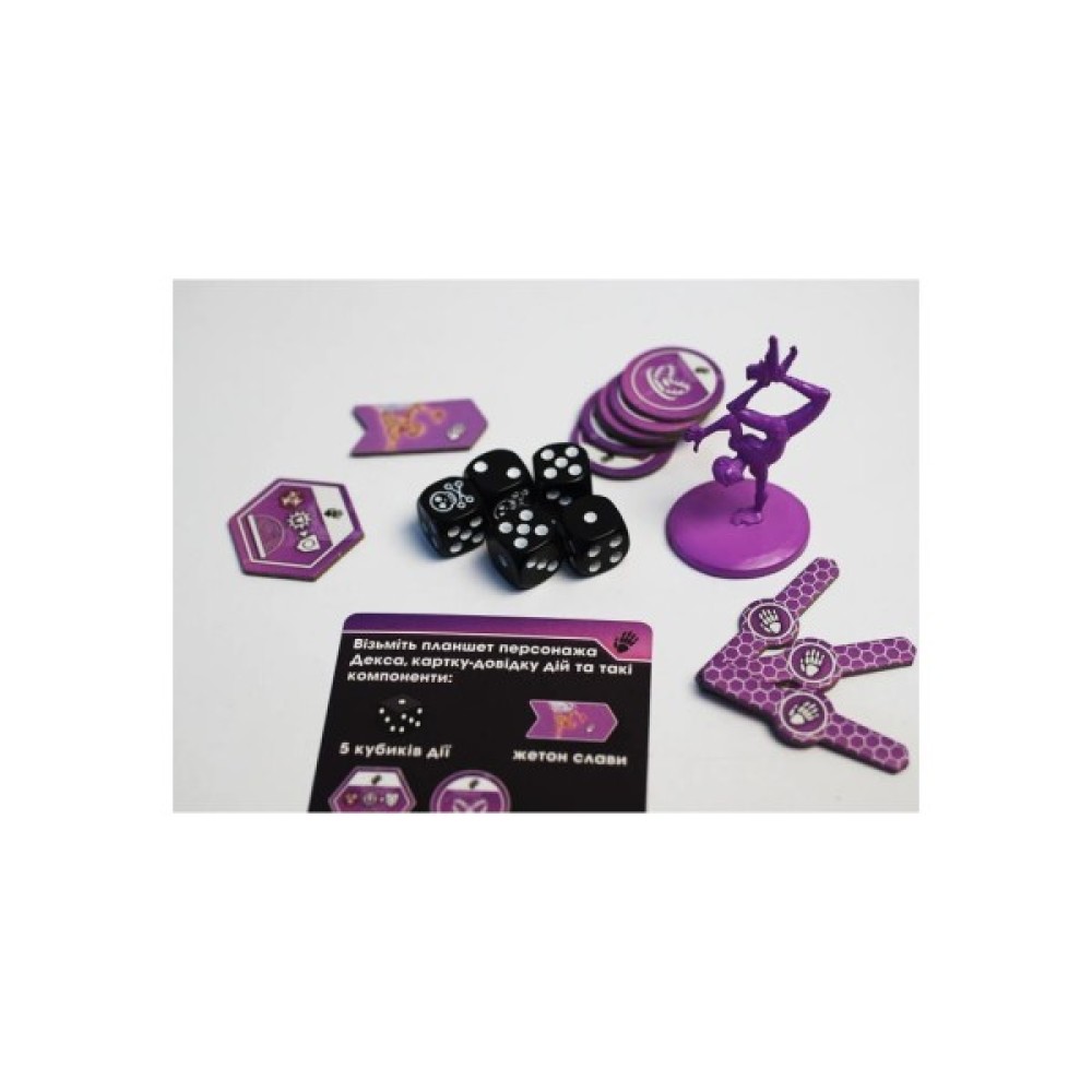 Розрахована на гравців від 12 років, ця гра пропонує інноваційну механіку кубиків, яка забезпечує контроль над кожним ходом. Ви самі вирішуєте, як найкраще використати кожну грань кубика, щоб досягти своїх цілей, перетворюючи кожну партію на унікальний стратегічний виклик. Королівська битва у настільному форматі створює атмосферу напруги та змагань.