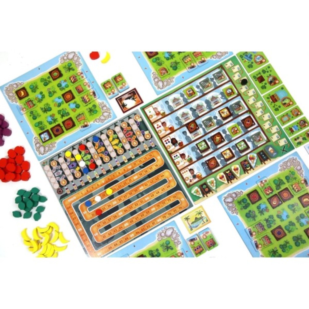 Гра розроблена для 1-4 гравців і підходить для всієї родини, а завдяки простим правилам, вона цікава і для дітей від 8 років. Комплектація вражає: 4 мапи острова, 50 тайлів кораблів, 100 фруктів та багато іншого.