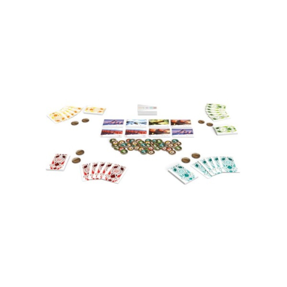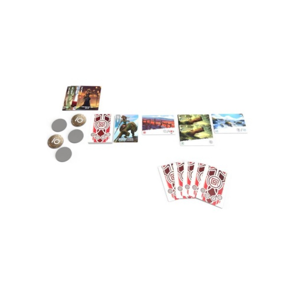 51 картка земель, 5 карток-підказок, 60 карток персонажів (5 x 12), 75 жетонів (значенням 1, 5, 10 і 25), правила гри