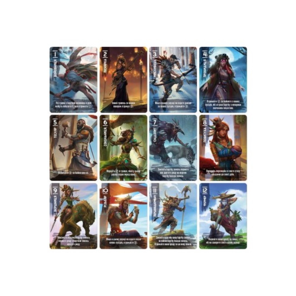 Висока якість компонентів гри вражає: з 51 карткою земель, 5 картками-підказками та набором з 75 жетонів номіналами 1, 5, 10 і 25, ви опинитеся у світі Ваальбари, де кожен хід може стати ключовим. Тут важливо не тільки розвивати свій клан, але й передбачати дії суперників, що додає грі особливої інтриги.
