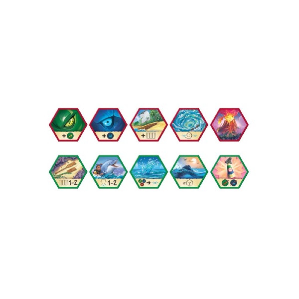 Перед вами стоїть непросте завдання: врятувати команду зникаючого острова, рясно наповненого небезпеками океану. Ви маєте переправити шукачів пригод на безпечну сушу, оминаючи загрози у вигляді акул, морських змій та легендарних кайджю. На допомогу приходять 12 плотів, кожен з яких вміщує до трьох фішок шукачів пригод.