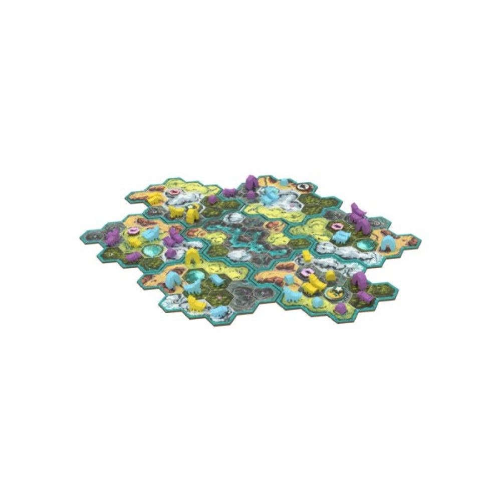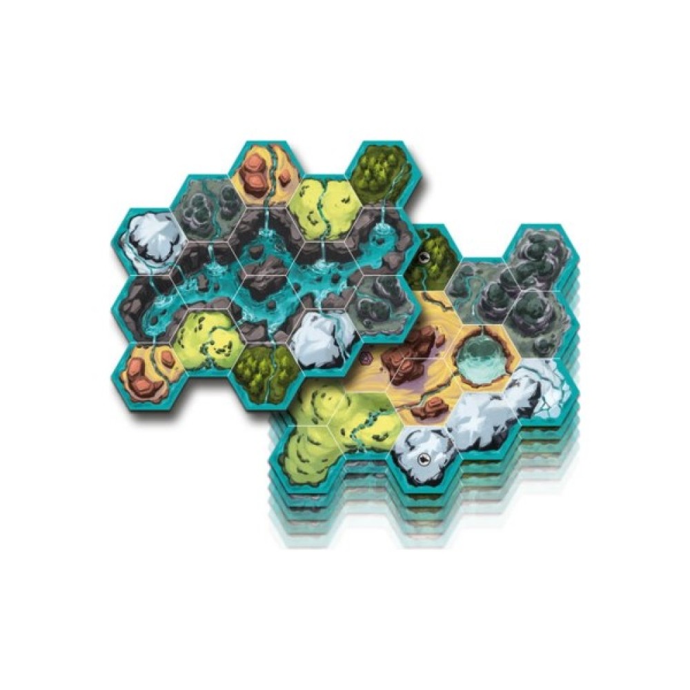 Почніть вашу гру з стартовим полем та 10 полями регіонів, які допоможуть створити захопливий ландшафт для вашої стратегії. Використовуйте різнокольорові фішки альфа-вовків, стайних вовків та сховищ, щоб забезпечити домінування у регіонах, і покращуйте свої здібності за допомогою двосторонніх планшетів гравців. Інтеграція з двостороннім планшетом Місяця додасть грі непередбачуваності та глибини.