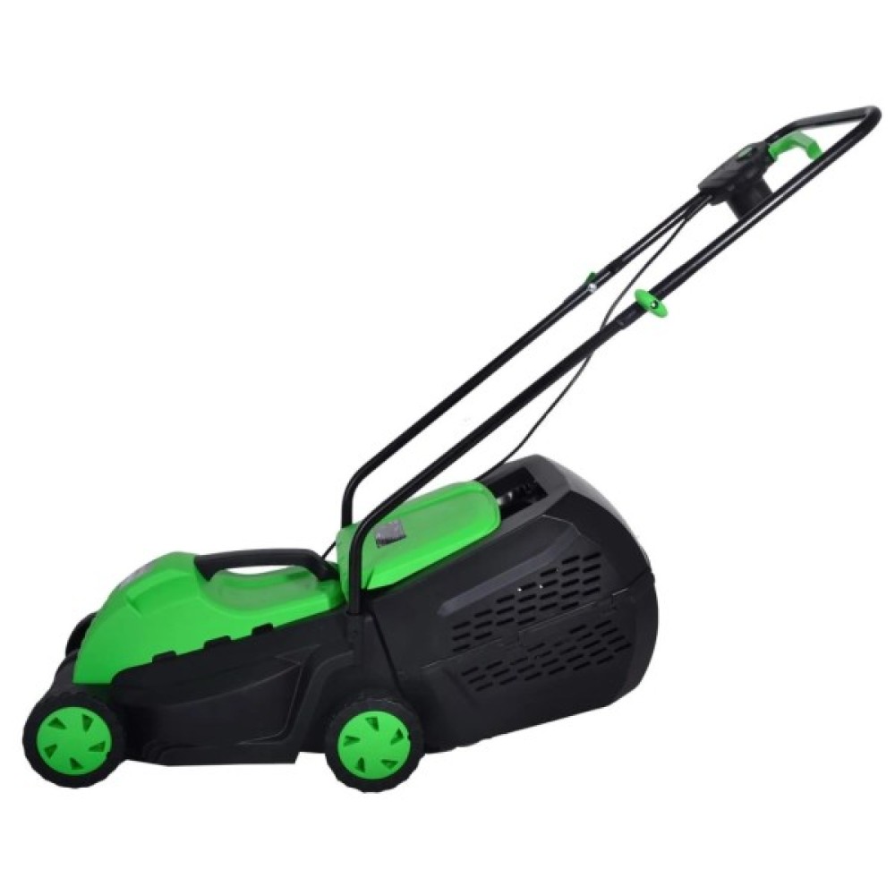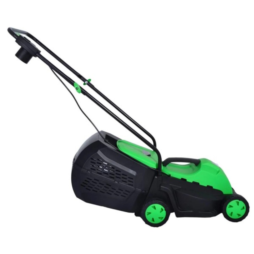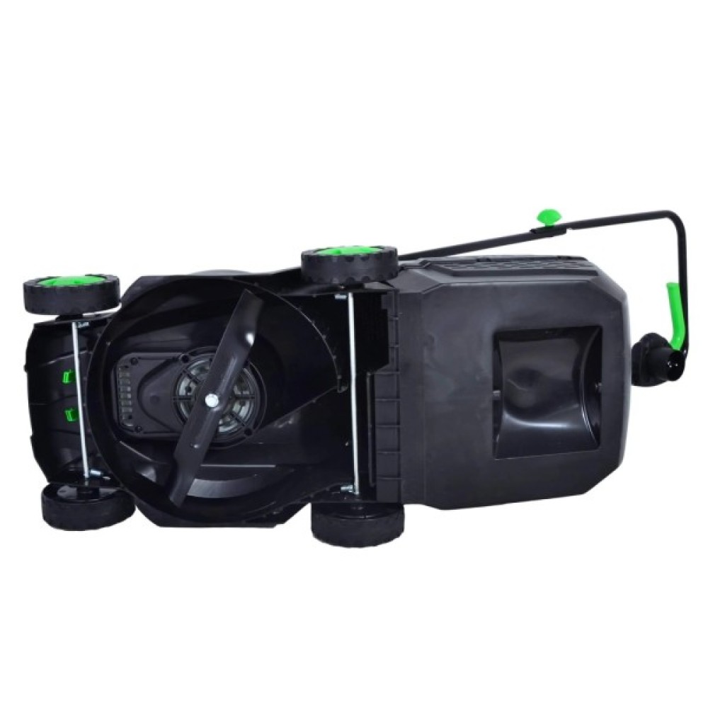 Крім цього, газонокосарка обладнана досить містким пластиковим травозбирачем на 35 літрів, що робить його чудовим обладнанням для територій до 250-300 м.кв. Неабиякій продуктивності сприяє різальна система із захоплення завширшки 320 мм. Також є можливість вибору необхідного рівня зрізання трави у трьох положеннях — 25, 40 і 55 мм. Також варто згадати невеликі розміри та вагу пристрою (9 кг), що дає змогу не тільки з легкістю переміщати пристрій, а й залишати на зберігання в будь-якому зручному для вас місці.