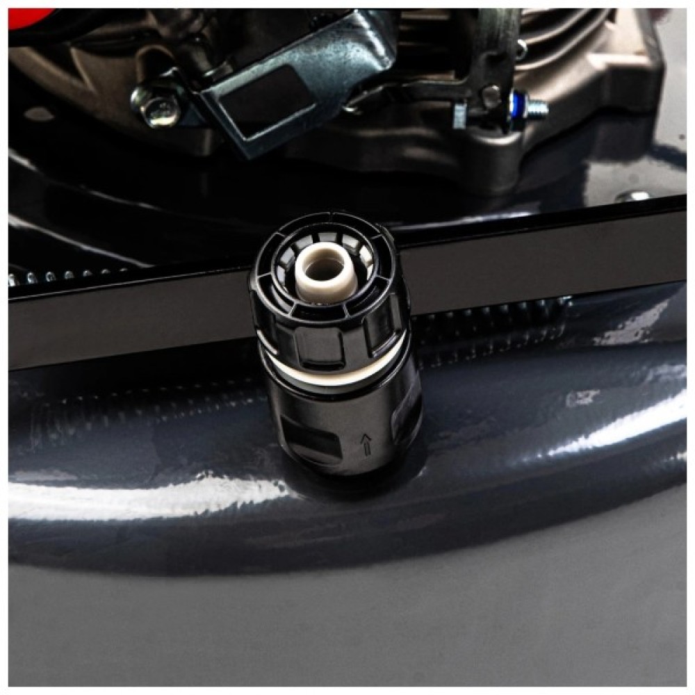 • Конектор на деці для під'єднання садового шланга дає змогу легко очистити її від трави за допомогою води