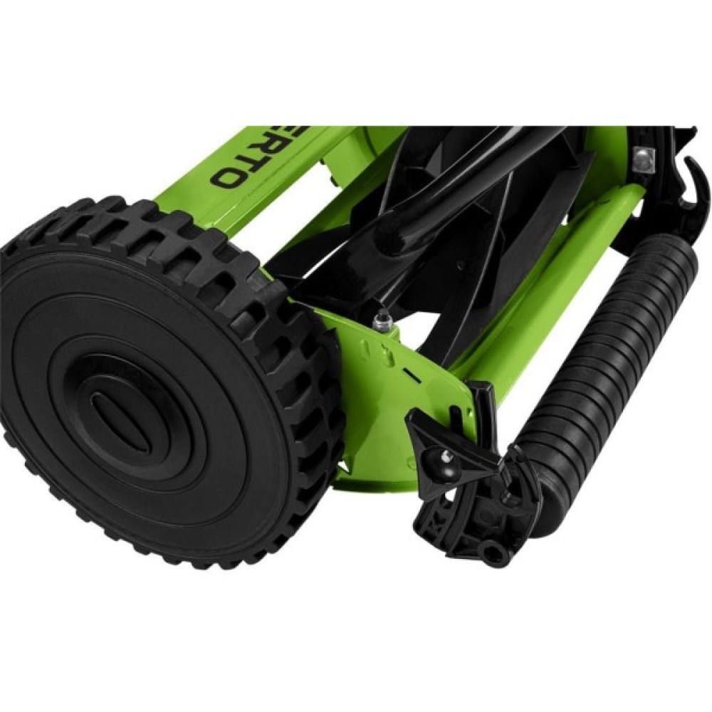 Ручна газонокосарка VERTO (арт. 15G350) з шириною зрізу 30 см - екологічна і компактна альтернатива електричним або бензиновим косаркам для невеликих ділянок присадибних газонів або невеликих садів, які потребують частого догляду. Косарка легка (важить 7 кг) і має місткий 16-літровий кошик. Регулювання висоти від 12 до 45 мм дозволяє розташовувати косарку нижче або вище від землі.