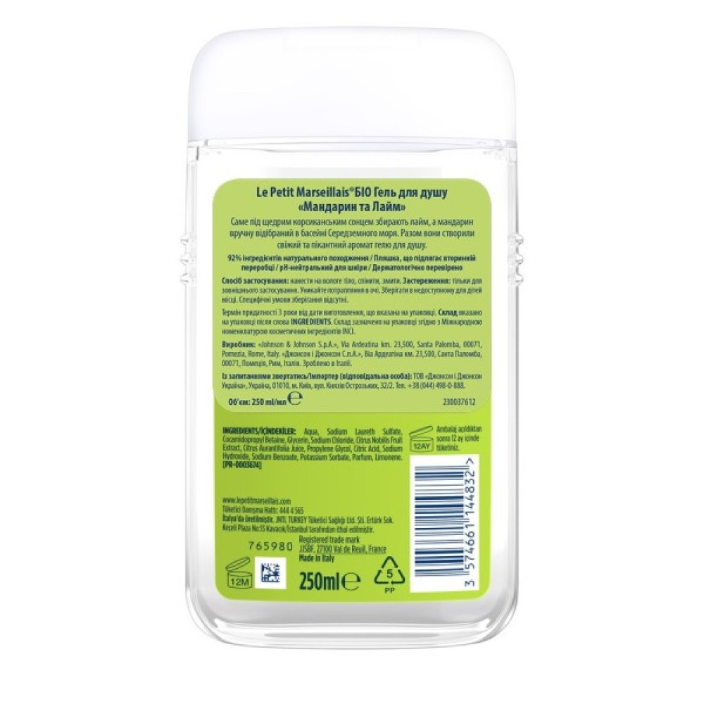 Гель для душу Le Petit Marseillais БІО «Мандарин та Лайм» 250 мл занурює вас в атмосферу французького Провансу, де кожен елемент створений з любов'ю до природи. Цей продукт, виготовлений в Італії, забезпечує зволоження та очищення для всіх типів шкіри, що робить його універсальним вибором для жінок, які цінують якість і комфорт.