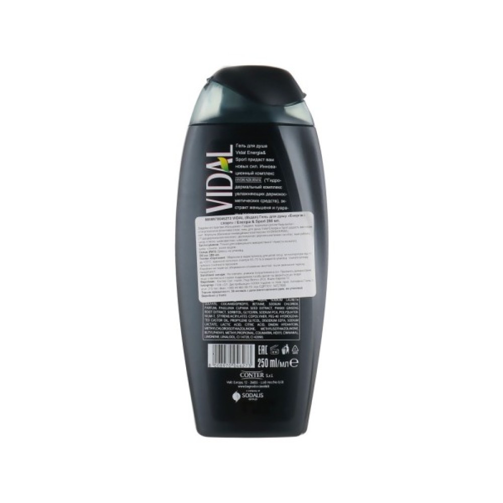 Гель для душу Vidal "Енергія і спорт" 250 мл — ваш ключ до свіжості та комфорту, ідеально підходить для тих, хто цінує активний спосіб життя. Зроблений в Італії з урахуванням високих стандартів якості мас-маркету, цей гель поєднує в собі вершину інновацій з використанням натуральних екстрактів гуарани та женьшеня. Унікальна формула дарує вашій шкірі зволоження, очищення, тонізування і пом'якшення, не залишаючи відчуття липкості.