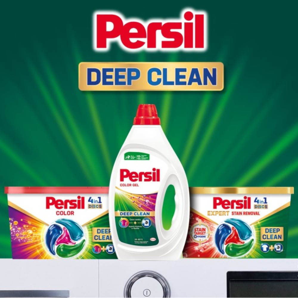 Persil Color Gel дарує вашим речам свіжість і аромат, гарантуючи, що ваші речі залишатимуться такими ж яскравими, як і в день покупки. Він ефективний при пранні у воді низької температури, починаючи всього лише з 20 °C, що забезпечує енергозбереження та дбайливе ставлення до тканин. Більш того, цей гель допомагає утримувати вашу пральну машину гігієнічною, усуваючи неприємні запахи, які часто викликані відкладеннями в обладнанні.