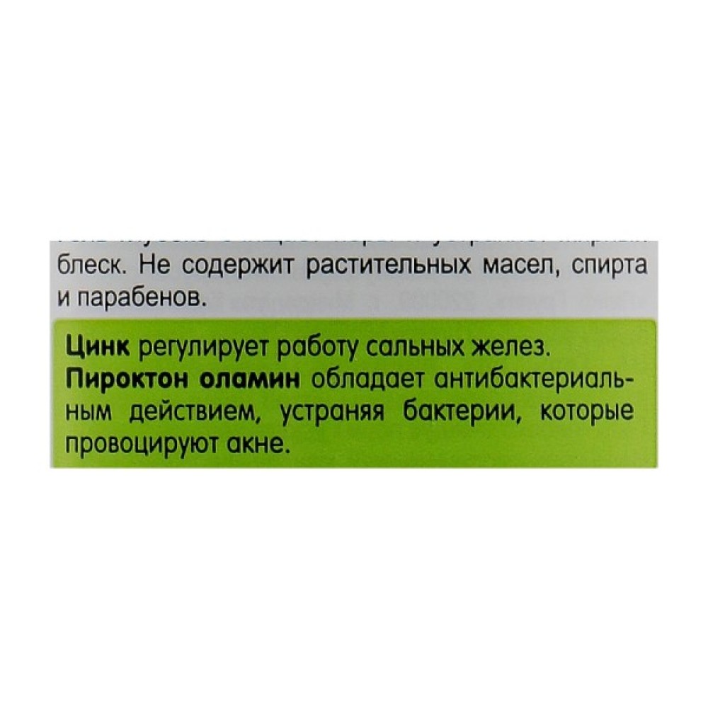 Засіб має яскраві антибактеріальні властивості, усуває подразнення, бореться з висипами. Цинк нормалізує себосекрецію й оптимізує роботу сальних залоз, відмінно матує шкіру, заспокоює її та знімає запалення. Косметичний продукт буде особливо актуальним для власниць проблемної, комбінованої та жирної шкіри, адже надає обличчю оксамитової матовості, шовковистості та ніжності на дотик.