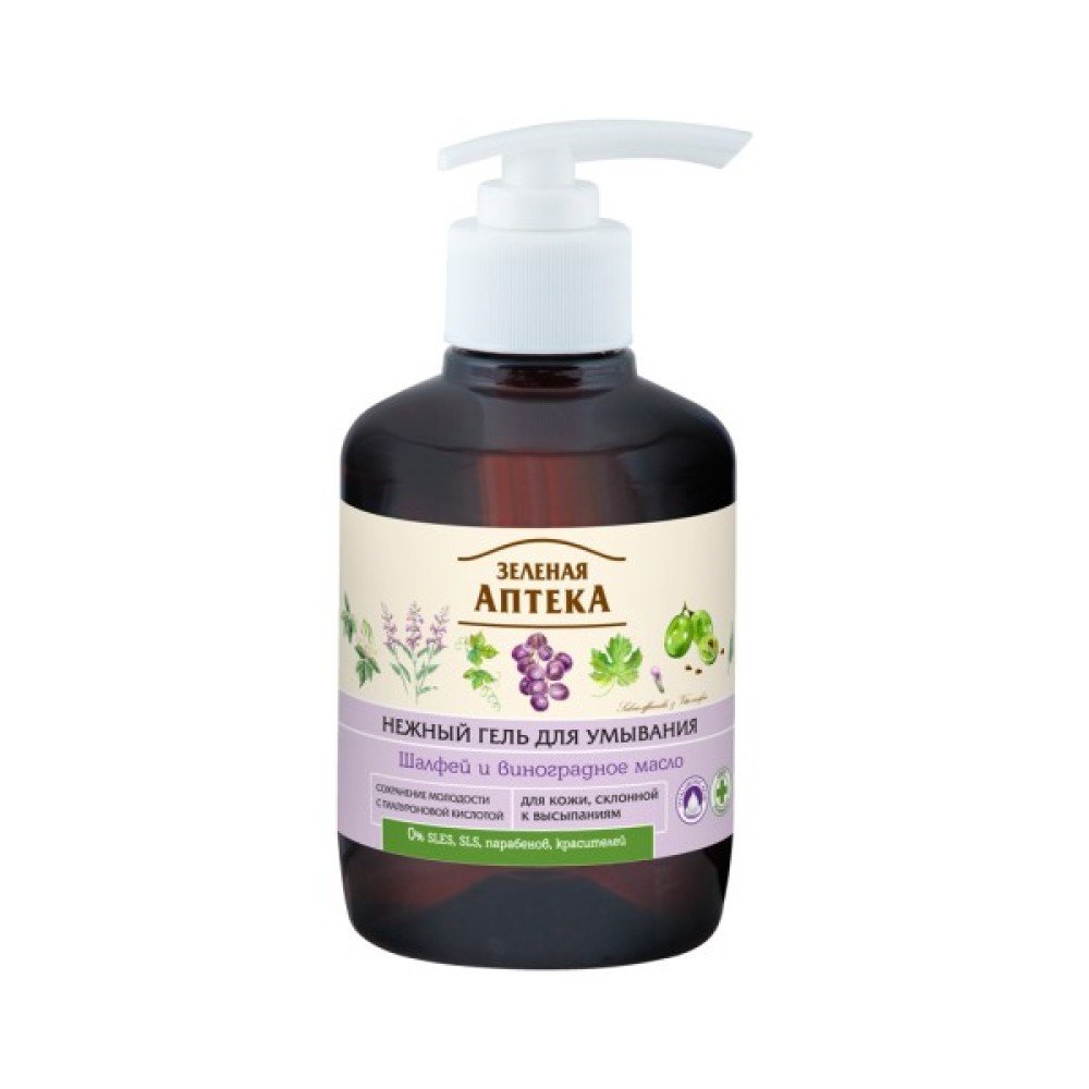 У складі міститься екстракт шавлії, який наділяє гель регенерувальними, бактерицидними, протизапальними та антисептичними властивостями. Компонент запобігає подразненостям, покращує колір шкіри, освіжає і тонізує. Також формулу збагатили алантоїном і Д-пантенолом, які допомагають засобу відлущувати омертвілі частинки, заспокоювати, пом'якшувати й активізувати регенерацію клітин.
