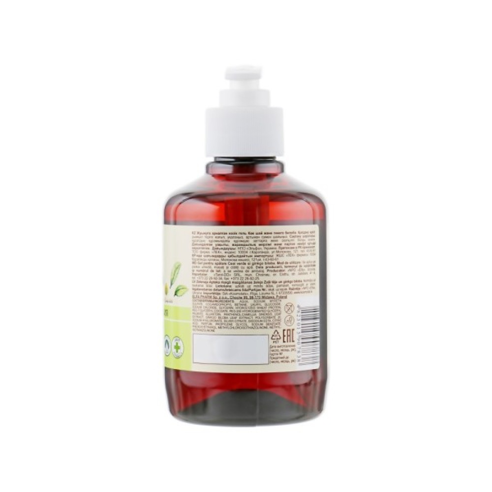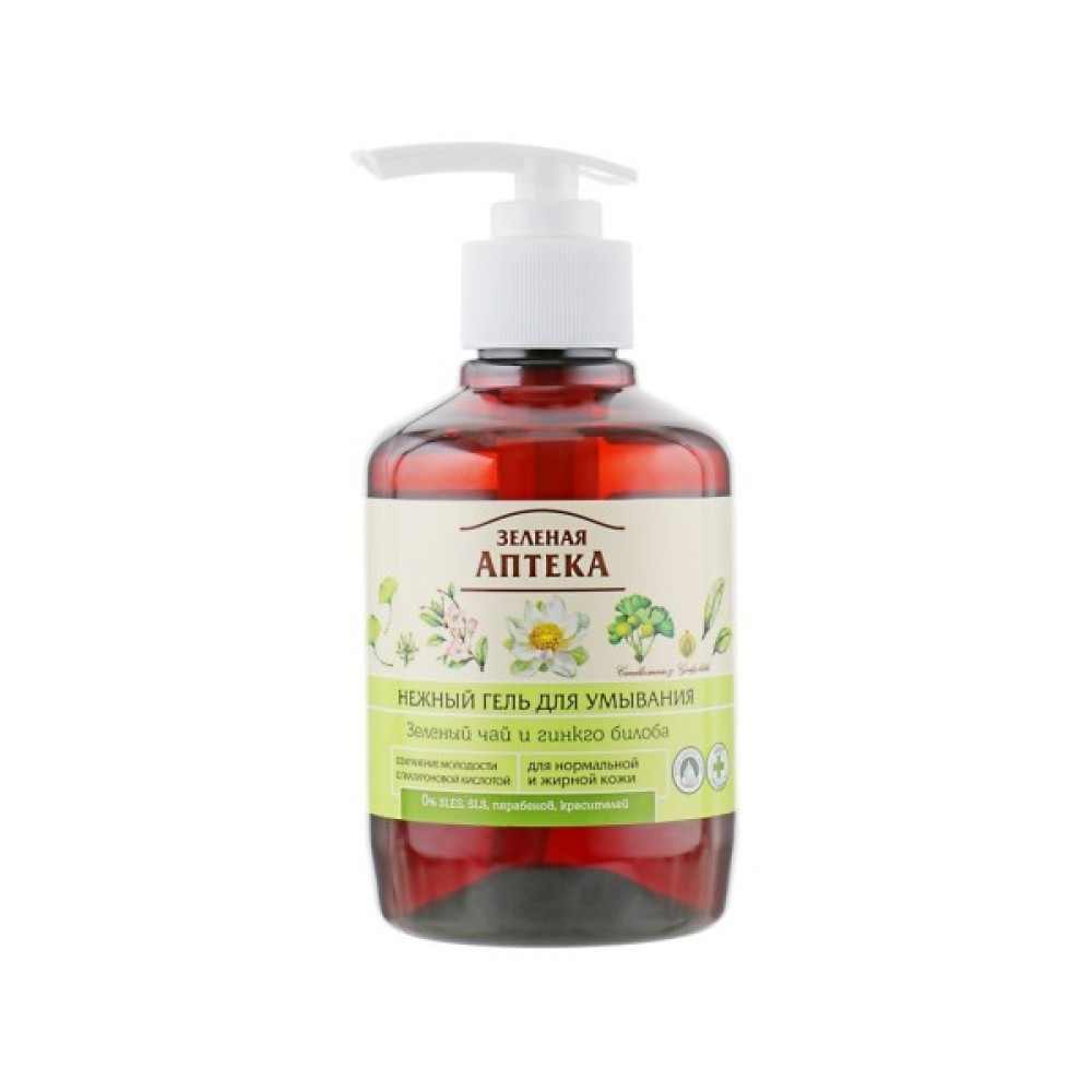 Ніжний гель для вмивання «Ніжний Зелений чай та гінкго білоба» створений експертами української торгової марки «Зелена аптека» для щоденного догляду і дбайливого видалення залишків макіяжу, продуктів життєдіяльності сальних залоз, поту і пилу. Цей дивовижний очищувальний засіб має безмильну основу, яка не пересушує шкіру, освіжаючи і підтримуючи в нормі природний pH-баланс.