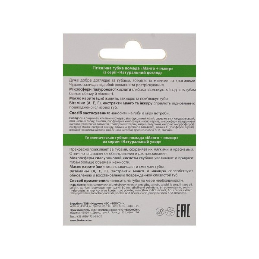 Вітаміни (А, Е, F), олія манго й екстракт інжиру сприяють оновленню і відновленню пошкодженої слизової.