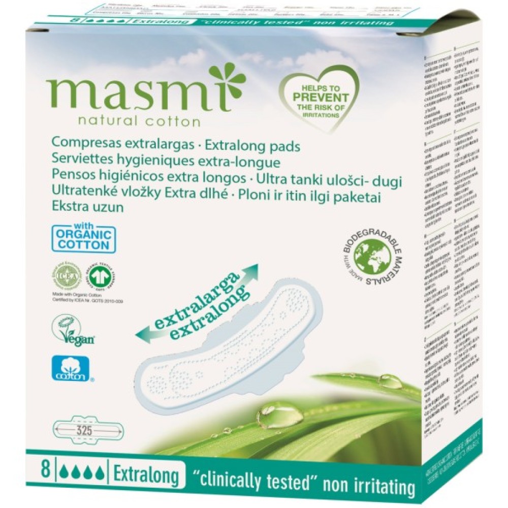 Індивідуальне біорозкладне паковання забезпечує додаткову гігієнічність і дає змогу завжди мати прокладки з собою поштучно (в сумочці). Розкладаючися у природі, прокладки не завдають шкоди довкіллю. Подовжений розмір (325 мм) прокладок дає змогу збільшити поглинальну здатність ще на 15%, порівнюючи з прокладками Masmi для сильних виділень (Арт. 100025).