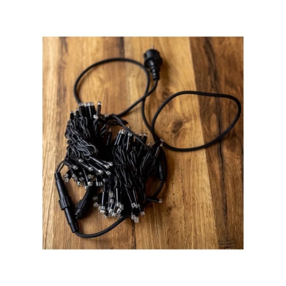 Довжина гірлянди складає 10 метрів, що забезпечує достатню гнучкість у виборі місця для встановлення. Оснащена 100 лампочками, вона створює яскраве й водночас тепле освітлення, споживаючи всього лиш 6 Вт, що робить її економічною та екологічною у використанні. Її живлення здійснюється від стандартної домашньої електромережі 220V, що спрощує процес підключення та експлуатації.