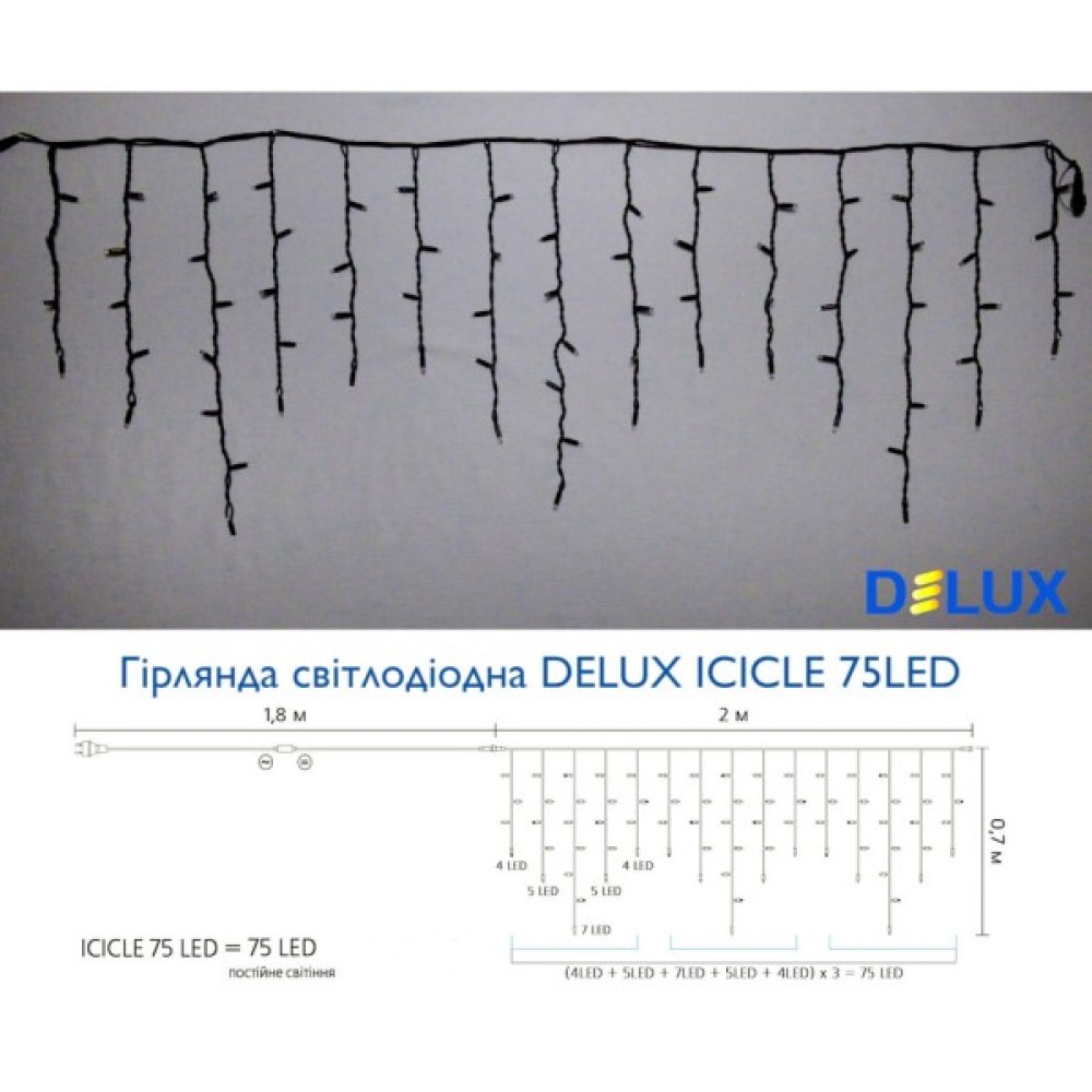 Гірлянда, Delux, ICICLE, 75, LED, 2, x, 07, м, IP44, EN, Жовтийчорний, 90016591