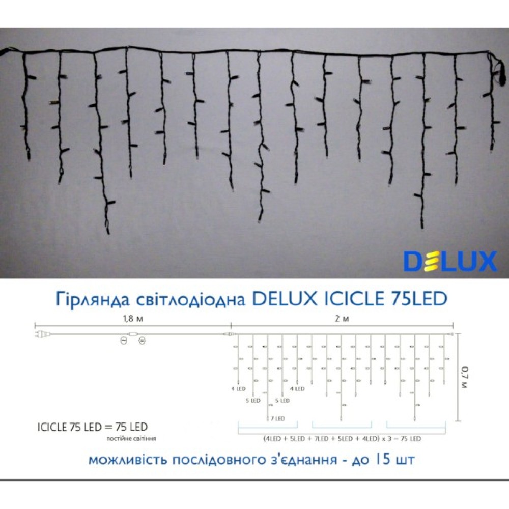 Оберіть гірлянду Delux Icicle для створення атмосферного, яскравого та стильного свята. Це інвестиція в якість та незмінна частина ваших урочистих моментів. Купуючи цю гірлянду, ви отримуєте натхнення та нові можливості для творчості!