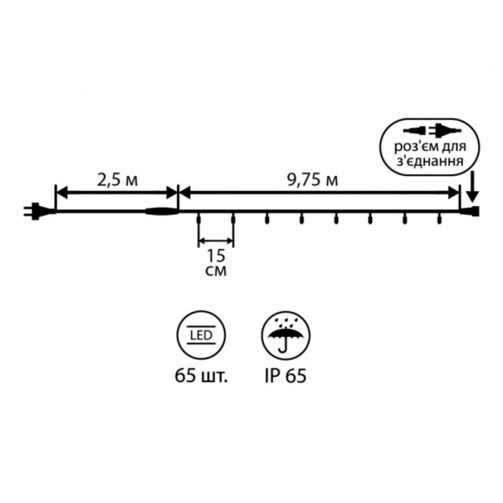 Гірлянда Novogod`ko вулична, 65 LED, IP65, білий теплий, зелений провід, 12,25 м (801190)