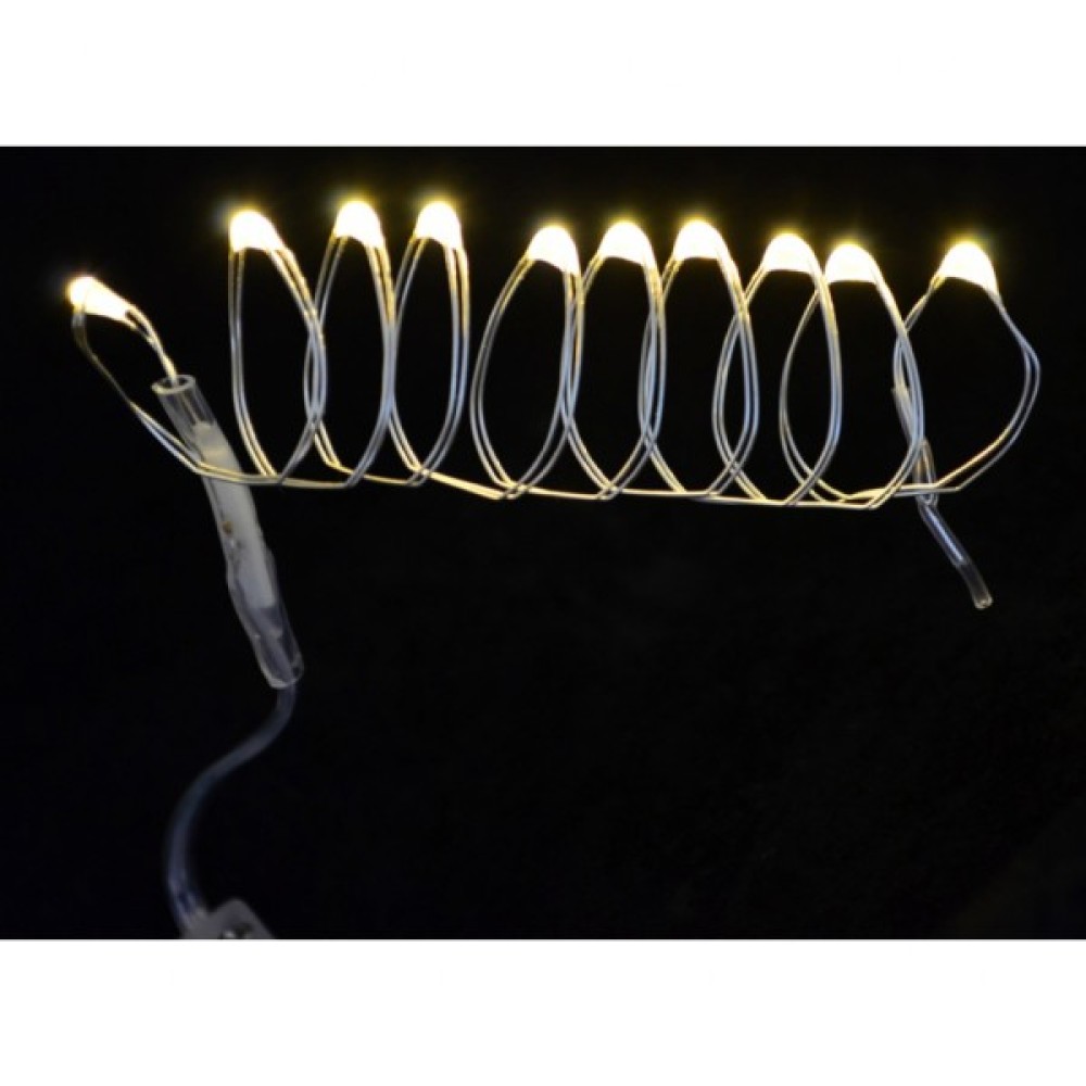 Особливістю цієї гірлянди є 10 молочно-білих LED-лампочок, що випромінюють м'яке сяйво, створюючи атмосферу тепла і затишку. Лампочки зручно розміщені на міцному пластиковому дроті, забезпечуючи надійність і тривалий термін експлуатації. Використання світлодіодних технологій гарантує енергоефективність, тому вам не потрібно хвилюватися про великі витрати електроенергії. Гірлянда живиться від батарейок, що робить її мобільною і зручною у використанні, адже вам не доведеться шукати місце біля розетки.