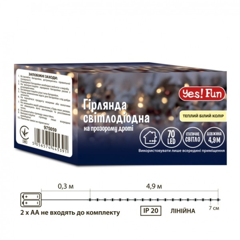 Гірлянда, YES, Fun, Нитка, 70, LED, Теплобіла, 49, м, Статична, На, батарейках, 975059