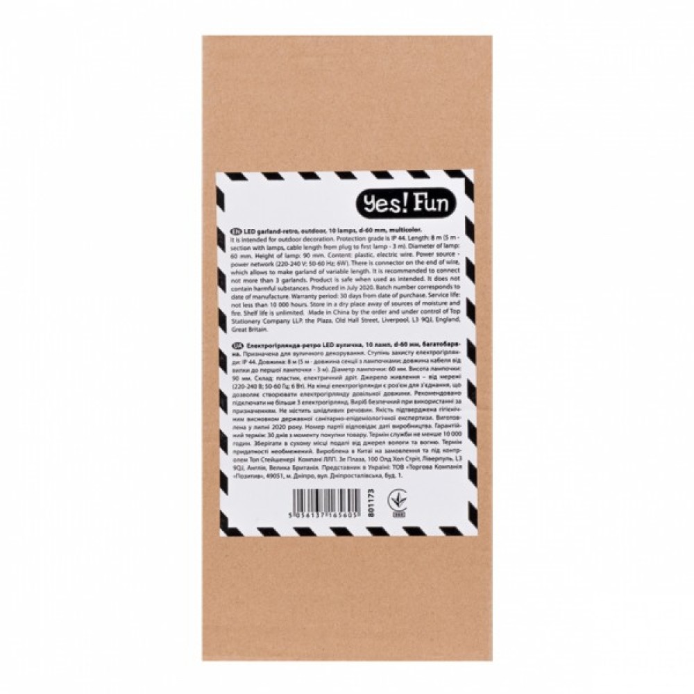 Гірлянда YES! Fun ретро LED вулична 10 ламп, 6 м, IP44, багатобарвна, 8 м (801173)