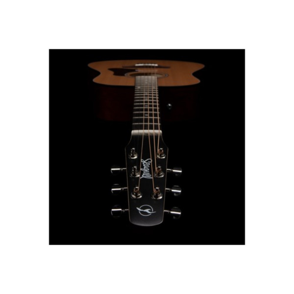 Гітара оснащена верхньою декою з масиву кедра, обробленою під тиском для максимальної резонансності та тривалого звучання. Гриф виготовлений із сріблястого клена, що забезпечує комфортну гру та довговічність. Задня частина і боки мають більш ергономічну форму, що додає зручності під час гри. Напівглянсове покриття створює елегантний вигляд, одночасно захищаючи інструмент від зносу.