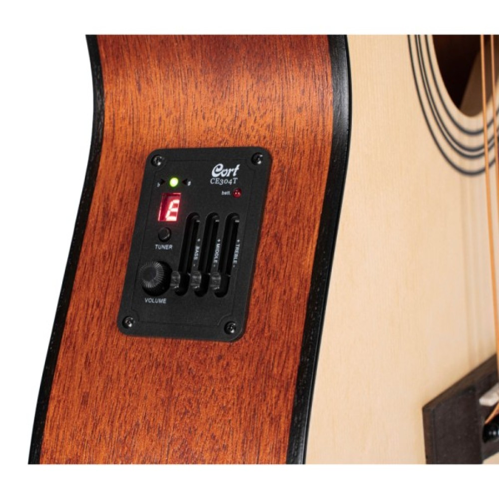 Вбудована електронікаAF510E обладнана вбудованим керамічним п'єзозвукознімачем і передпідсилювачем Cort CE304T. Трьохсмуговий еквалайзер дозволяє точно підстоїти звучання інструмента, а хроматичний тюнер з LED дисплеєм дає можливість швидко і зручно налаштувати гітару навіть на затемненій сцені.