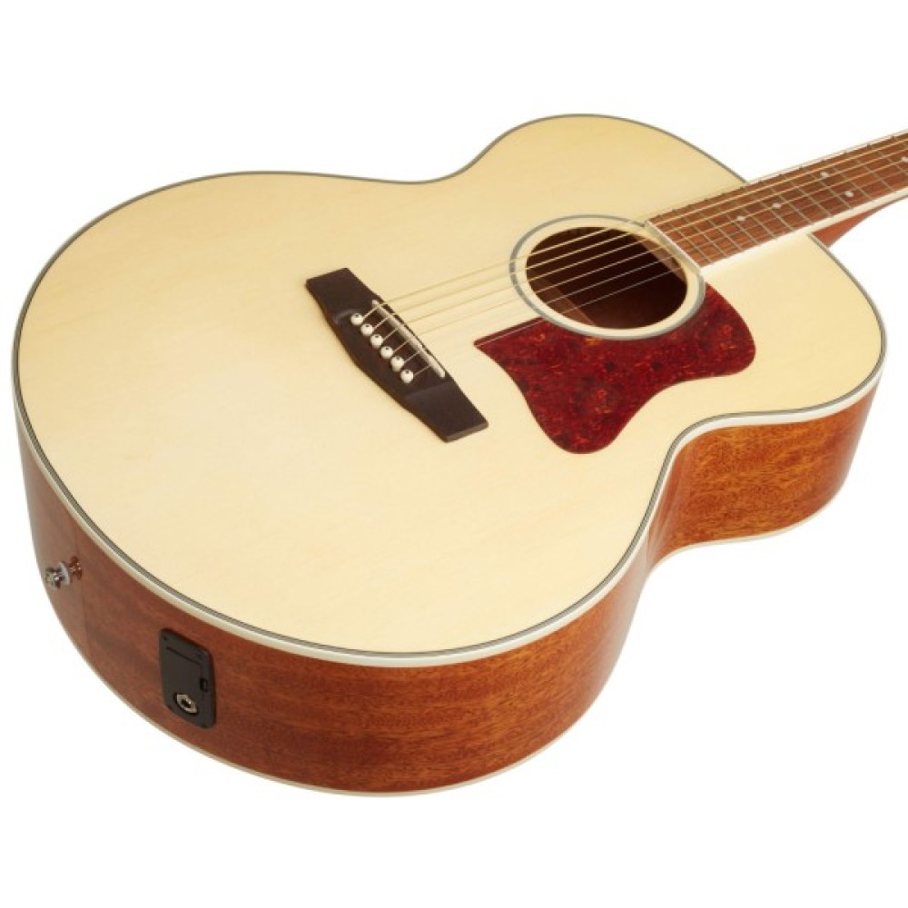 Модель CJ-MEDX - це електро-акустична гітара розміру джамбо з багатим об'ємним звучанням і привабливим ретро дизайном. Традиційний джамбо корпус, виготовлений з червоного дерева, відмінно поєднується з ялиновою верхньою декою, а вбудований фірмовий звукознімач Cort CE306T робить цей інструмент відмінним вибором для музикантів, які шукають доступну, стильну на вигляд гітару зі справді "великим" звучанням.