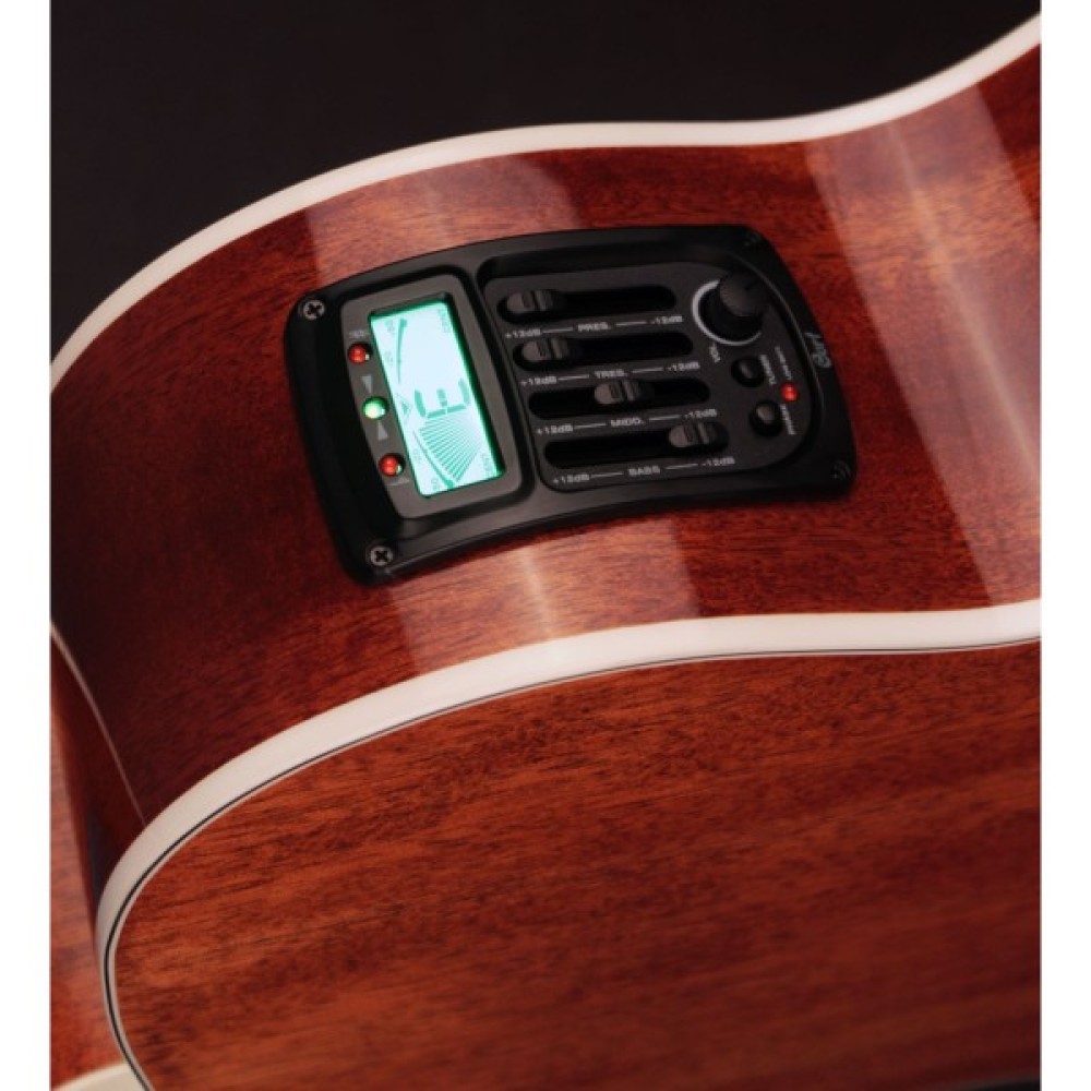 CJ-MEDX обладнана вбудованим п'єзозвукознімачем і передпідсилювачем Cort CE306T. 4-смуговий еквалайзер дозволяє точно відрегулювати звучання інструмента, а хроматичний тюнер з LED індикаторами і РК дисплеєм дає можливість швидко і зручно налаштувати гітару навіть на затемненій сцені.