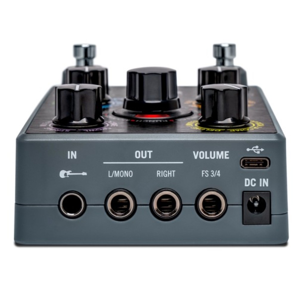 Пристрій можуть живитися від трьох батарейок типу АА (входять в комплект) або від додаткового 9-вольтового джерела живлення. Додаткові функції включають стереовиходи, Tap Tempo, тюнер, шумоподавлювач, вихід для навушників та аудіоінтерфейс USB-C з можливістю реампінгу. Додайте додаткову педаль експресії для регулювання гучності або до двох перемикачів ножів для вибору пресетів або включення та вимикання ефектів.
