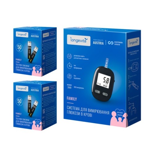 Глюкометр Longevita Family Система для вимірювання глюкози в крові + тест смужки 2 х 50 шт. (6837149)